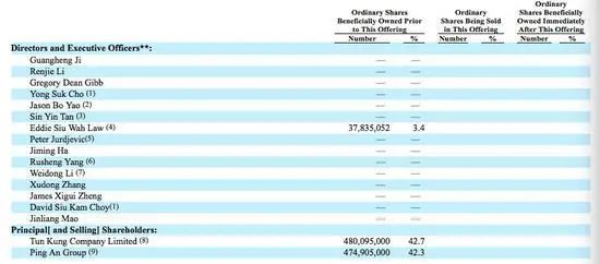 股东结构方面,中国平安持股42.3%、Tun Kung Company Limited(下称Tun Kung)持股42.7%。值得注意的是,Tongjun InvestmentCompanyLimited(下称Tongjun)和Lanbang Investment Company Limited分别持有Tun Kung41.0%和37.4%。其中,Tongjun代表中国平安某些高级雇员持股,其管理委员会成员为5名中国平安员工。