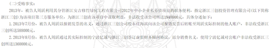 裁判文书网显示,2012年至2015年,被告人周跃在浙商证券担任副总裁期间,利用职务便利,以虚构第三方协议的方式骗取浙商证券资金人民币(以下币种相同)9801250元;利用职务便利为他人谋取利益,非法收受第三方服务单位1948000元。