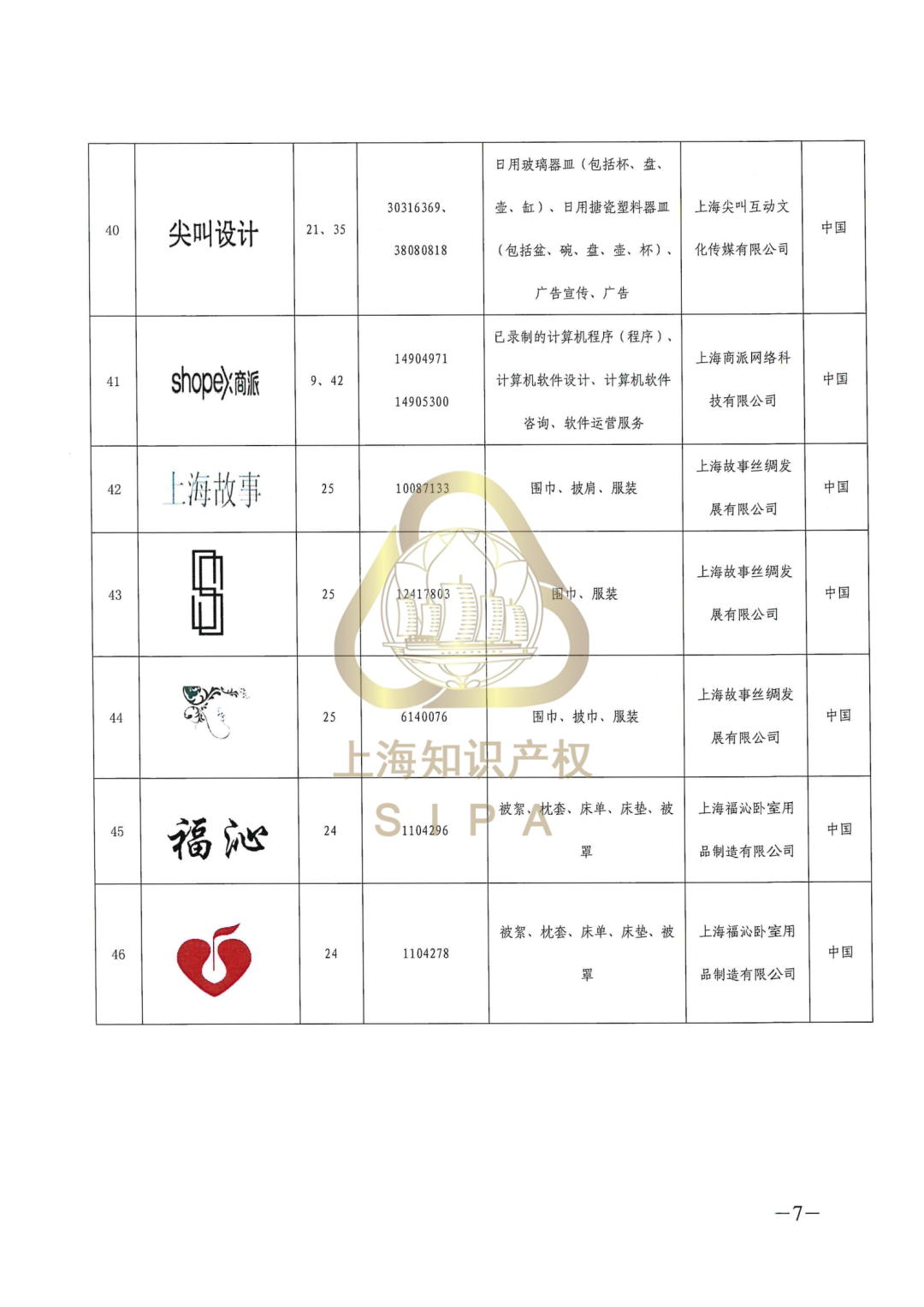 10月10日,上海市知识产权局官网发布《第七批上海市重点商标保护名录》,46件重点商标入选。