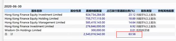 据中国基金报,这家公司股权高度集中,截至2020年6月30日,公司前四大股东合计持股比例达63.58%,其中,前三大股东均为公司执行董事许智铭的全资公司,许智铭为香港金融集团实际控制人。