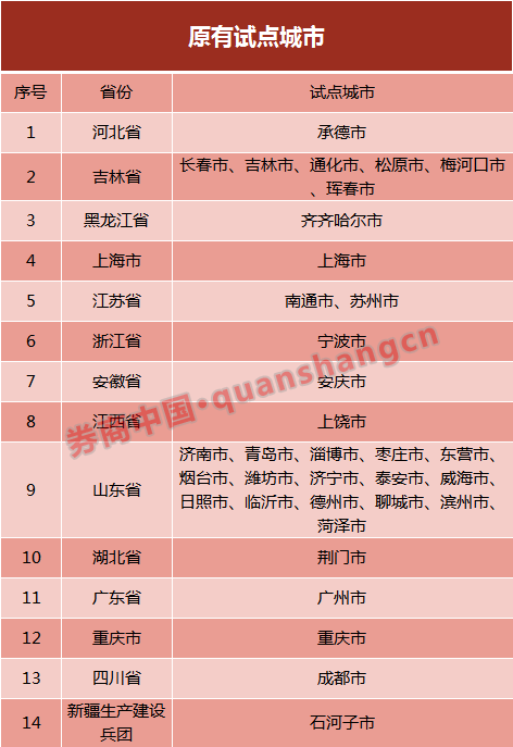 二、新增试点城市(14个)