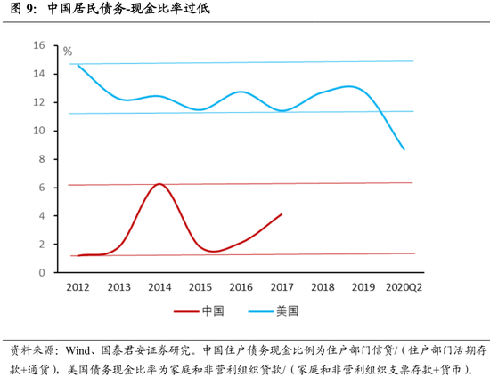 (1)相较美国而言,国内居民部门杠杆仍有提升空间,同时债务-现金比率远高于美国,持有大量“现金”成为家庭资产配置选项。