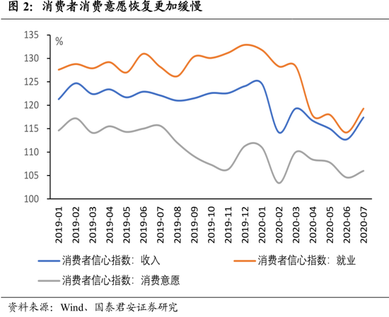 我们倾向于认为,收入格局短期仍将利好可选消费。疫情冲击,带来了收入分配不均格局的加剧,低收入群体的工资性收入与经营性收入受到重创,导致必选消费进一步改善的动能不足。二季度体现出的信贷资金下沉,如能在未来政策支撑下持续,或将带来改善助力。