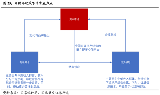 “双循环”将是我国中长期经济发展新理念,那么作为核心的内循环必然需要对内需——消费带来新的要求。基于对不同收入分层边际消费倾向的认知,如何在政策层面发现线索?从年内的政策导向以及居民收入分层背景中来看,我们认为短期核心在于三个方向,一是免税政策方向,二是国货潮,三是资本市场财富效应的发挥(图25)。