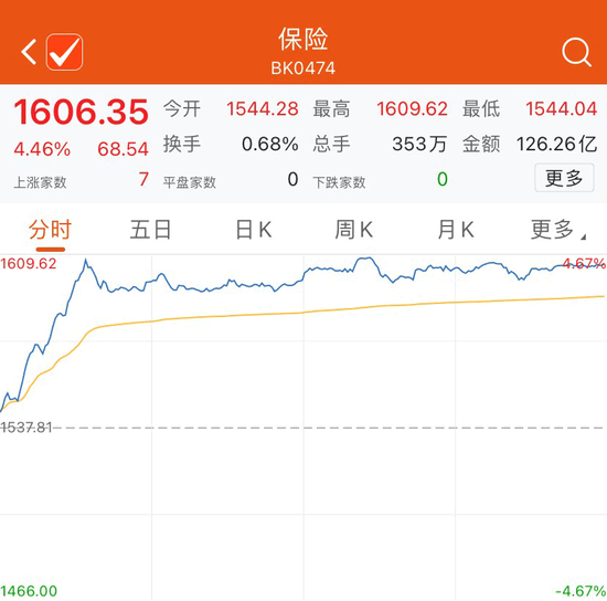 值得注意的是,在上周五的大涨中,以金融股为代表的权重板块并未见显著异动。但今日指数上涨的过程中,权重板块发力明显,保险及券商股领涨两市,是带动指数节节攀升的重要推动力。