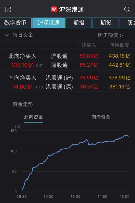 与此同时,北向资金也一改9月持续卖出的态势,继10月9日净买入112.67亿之后,北向资金今日再度开启扫货模式。截至收盘,北向资金当日净买入金额为135.1亿元,净买入额再创近三个月新高。这也是连续两个交易日北向资金净买入金额超过百亿元。