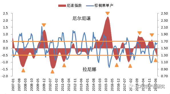 今冬的拉尼娜将给东南亚带来整体偏多的降水,面对即将到来的雨季,后期棕榈果收获很可能受到影响。在产量偏慢的背景下,预计四季度产地棕榈油库存重建延续较缓,将继续支撑棕榈油走势,并令01豆棕价差趋跌。