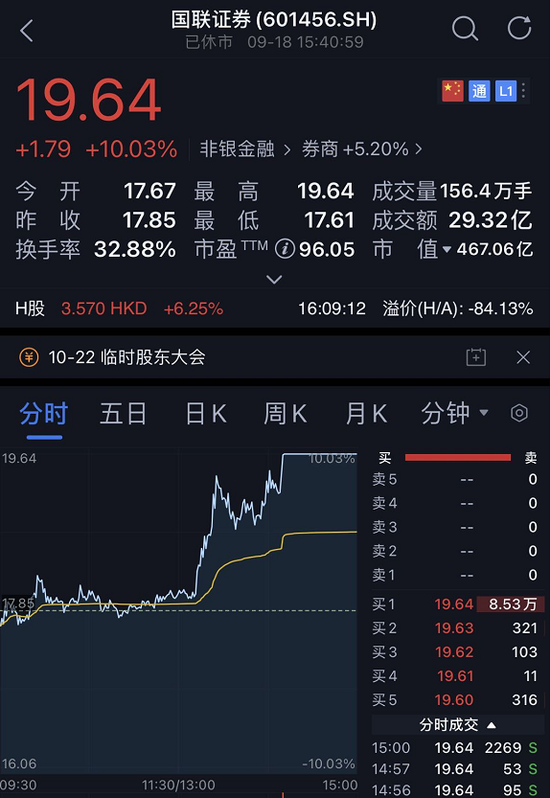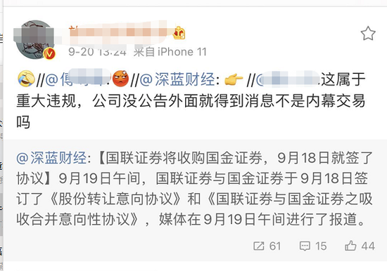 18日国联证券与国金证券两家券商均双双涨停,19日相关合并公告在各大社交媒体上流传。