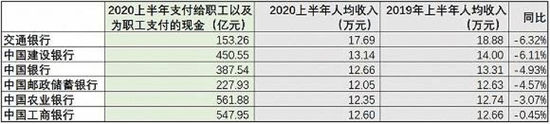不过,进入银行真的是想象中的性价比最高吗?一边是招兵买马,一边却是银行普遍迎来了降薪潮。根据界面新闻的报道,六大行2020年上半年职工人均收入全体出现下滑。股份制银行和城商行降薪最高竟达到了17.6%。