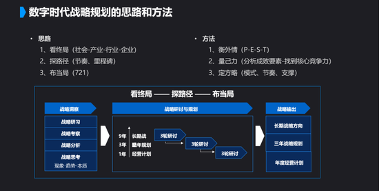 “看终局”是指要高瞻远瞩,需要思考每个行业如果跟数字化结合,今后它发展的终极目标、终极的场景是什么,衡外情、量己力,要对社会、行业、产业、企业各个维度有综合考量。