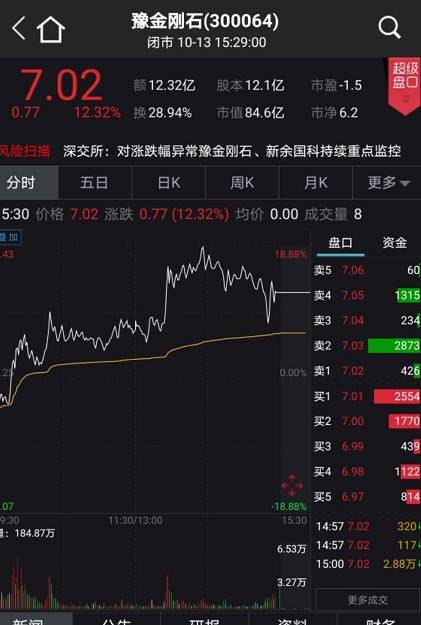 豫金刚石大涨12.32%: