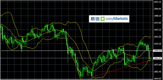 技术上说,黄金支撑是1887美元附近,跌破看1878美元附近,压力是1900美元附近,1907美元附近