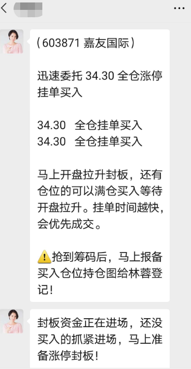 网友称,投资群有“老师”在集合竞价阶段让大家以涨停价格全仓挂单买入!“老师”表示抢筹时间很短,务必在收到消息后2分钟内快速完成挂单后截图登记,以保证9点30分开盘后第一时间成交,拉升封板。
