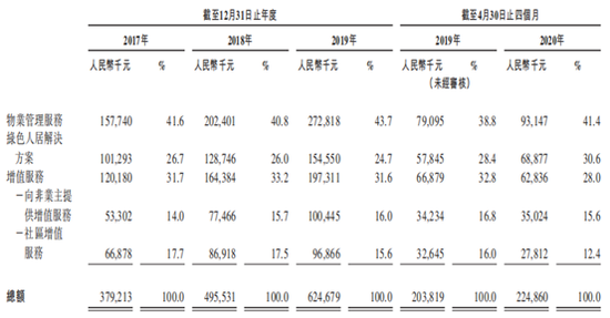 目前,第一服务的业务主要分为三大板块,分别为物业管理服务、绿色人居解决方案、增值服务,物业管理服务为其主要收入来源。于2020年4月30日,第一服务的合约建筑面积的业务版图涵盖中国19个省市的52个城市。