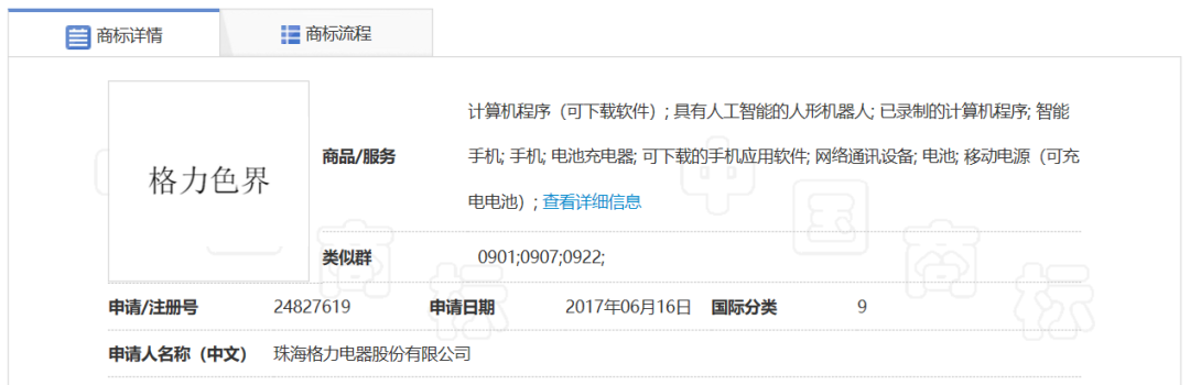目前,“格力色界”商标状态显示“撤销/无效宣告申请审查中”。