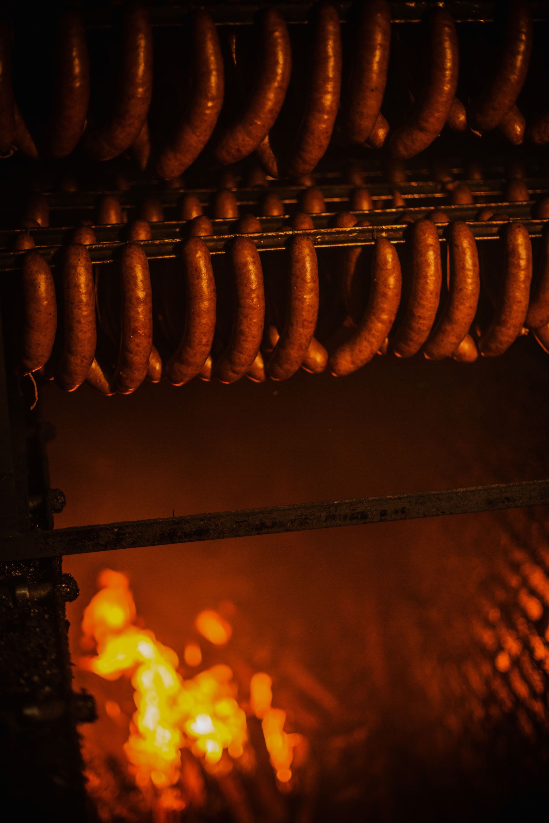 以最关键的熏制环节为例,秋林里道斯的红肠熏制依然采取着传统的手工工艺,木材的长度保证在1米2到1米4之间,而且不同的季节、湿度、温度对木柈的数量和摆放形状都有影响,会直接影响到最终出炉呈现的效果,这都需要依靠工人丰富的经验进行判断。在熏制达标后,工人就会进行封炉,利用炉中的低温余烬再熏烤十几个小时,以还原几百年前俄罗斯波罗的海地区的传统技法。