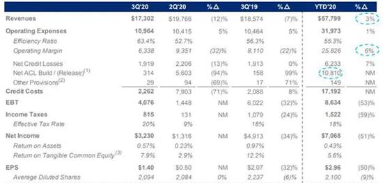 美国银行及富国银行表现较其余三家银行虽逊色不少,但仍有指标也超出市场预期。美国银行三季度每股收益为51美分,略高于市场预期49美分;净利润由上一季度的35.3亿美元增至48.8亿美元;实现营收204.5亿美元,略低于市场预期208亿美元。美国银行“乐观”地表示,在经历了经济停摆的最初冲击之后,当前消费市场正在反弹。