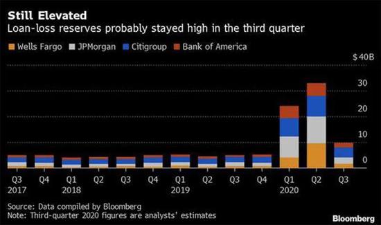 彭博此前曾汇总分析师预测数据显示,美国四大银行在第三季度可能增加了100亿美元的坏账拨备。然而,最新数据显示,五大行的坏账拨备均大幅下滑。