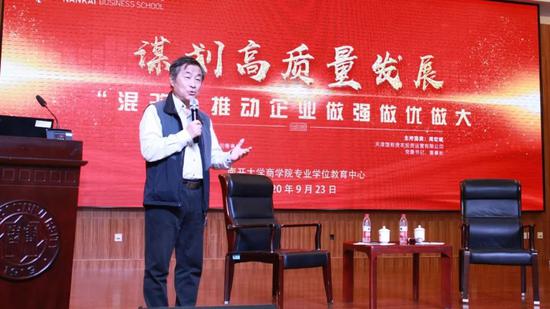 “百年南开,百年商科”,9月23日晚,丁立国董事长应邀到南开大学商学院作“谋划高质量发展——混改推动企业做强做优做大”的主题讲座。中国企业改革与研究会副会长周放生、南开大学商学院院长白长虹出席讲座,天津国有资本投资运营有限公司党委书记、董事长周宏斌主持讲座。讲座过程中,丁立国董事长与学生和嘉宾进行了互动交流,现场气氛热烈,精彩纷呈。