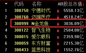 根据今天收盘价计算,目前,金龙鱼的总市值已经跃居创业板第三位,仅次于宁德时代(5558亿元)和迈瑞医疗(4518亿元),排在智飞生物、爱尔眼科之前。