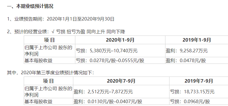 10月14日晚间,国盛金控发布了2020年前三季度业绩预告,公司预计前三季度归属于上市公司股东的净利润为亏损5380万元-1.07亿元。而在去年同期,公司还实现了9258.27万元的盈利。