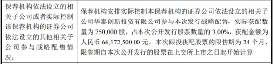 据宏力达上市发行结果公告显示,宏力达跟投机构为华泰创新投资有限公司,最终战略配售数量为75.00万股,跟投金额为6617.25万元,占发行总量的3.00%,限售期为24个月。