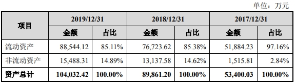 宏力达本次实际募资额远超公司总资产。2017年至2019年,宏力达资产总额分别为5.34亿元、8.99亿元和10.40亿元。公司流动资产所占比重分别为97.16%、85.38%和85.11%。2020年1-6月份,宏力达资产总额为11.53亿元。