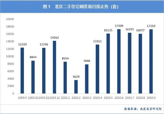 据我爱我家研究院统计,2020年9月北京全市二手住宅共网签17259套,环比8月增长7.49%,同比2019年9月增长40.10%;1-9月二手住宅共网签116297套,同比2019年1-9月增长6%,超过了去年同期水平。