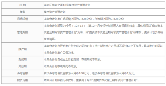 资料显示,英大证券安之衡18号在2015年2月13日成立,计划期限24个月(12+12),计划发行2.538亿元,最终实际仅募集到6703万元。