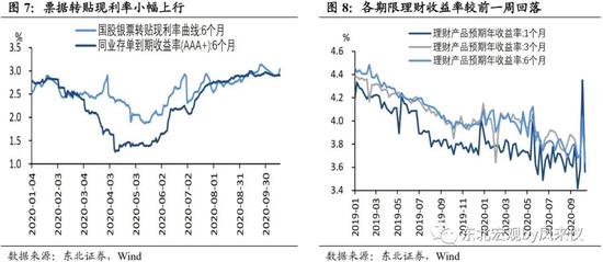 上周票据转贴现利率小幅上行。截至10月16日,6个月国股银票转贴现利率较前一周上行13.85BP至3.0385%,同期限AAA+同业存单利率小幅上行1.04BP至2.9014%。