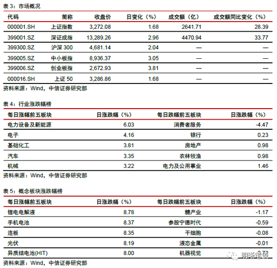2020年10月16日,银存间质押式回购加权利率大体上行,隔夜、7天、14天、21天和1个月分别变动了-3.2bps、0.44bps、1.1bps、4.36bps和-13.34bps至2.00%、2.19%、2.20%、2.26%和2.63%。国债到期收益率大体下行,1年、3年、5年、10年分别变动0.79bps、-0.31bps、-0.98bps、-0.98bps至2.70%、3.02%、3.16%、3.22%。上证综指下跌0.13%至3332.18点,深证成指上涨0.68%至13624.89点,创业板指上涨0.49%至2737.96点。