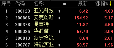 截至记者发稿,安克创新大涨5.06%、万安科技大涨4.74%,领益智造、田中精机、华润微涨超3%。