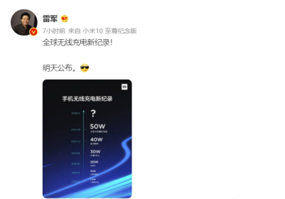 两个月前,小米10至尊纪念版全球首发50瓦无线秒充技术,刷新小米无线领域新纪录。