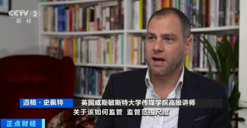 英国威斯敏斯特大学传媒学院高级讲师 道格·史佩特:对网络媒体的监管有难度,现在有很多正在进行的探讨,关于该如何监管,监管范围尺度,还有在技术层面是否可行,而最后一项(技术层面)事实上是最难的。