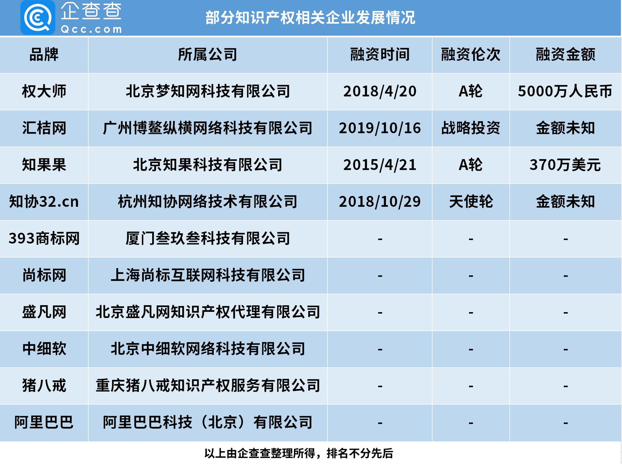 随着知识产权服务认可度不断提升,越来越多的资本进入知识产权服务领域,布局相关市场,企查查整理发现,除了中细软、猪八戒等企业,互联网巨头阿里巴巴也已经入局知识产权行业,成立阿里巴巴科技(北京)有限公司,利用广告与网络平台优势,从事商标代理、版权贸易等活动。