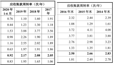 2014年至2020年6月30日,西力科技应收账款余额分别为1.59亿元、2.94亿元、3.93亿元、2.05亿元、2.29亿元、2.06亿元、2.46亿元。
