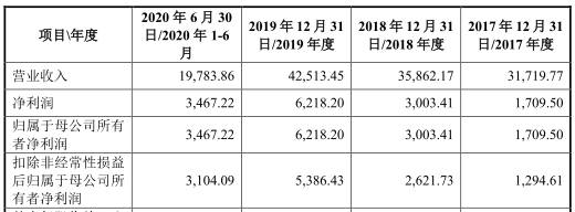 2017年至2020年1-6月,西力科技实现营业收入分别为3.17亿元、3.59亿元、4.25亿元、1.98亿元,实现归属于母公司所有者净利润分别为1709.50万元、3003.41万元、6218.20万元、3467.22万元。