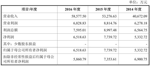 2014年至2016年,西力科技实现营业收入分别为4.07亿元、5.33亿元、5.86亿元,实现归属于母公司所有者净利润分别为5332.72万元、7739.72万元、6518.63万元。