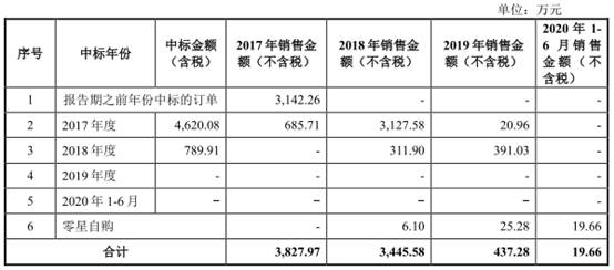 2017年至2020年1-6月,西力科技对南方电网及其下属各网省公司的销售金额分别为3827.97万元、3445.58万元、437.28万元、19.66万元,占当期营业收入的比例分别为12.07%、9.61%、1.03%、0.10%。
