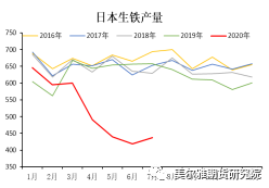 从日本的生铁产量以及粗钢产量,我们可以发现,在上半年产量持续下滑之后,6-7月日本钢铁产量触底回升,可以推算出日本国内的终端正在逐步复产。