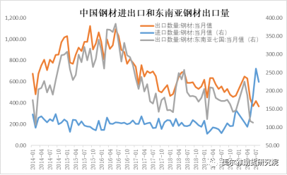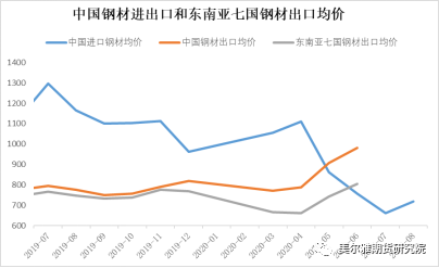 尤其是,中国进口钢材均价自2020年4月开始迅速下降,出口价格和东南亚七国出口价格在同一时间安区域上升。