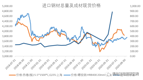 从统计数据来看,自2019年四季度以来,成材的现货价格和钢铁进口量具有高度的相关性。