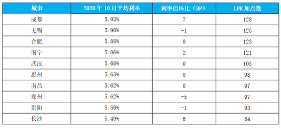 2020年10月首套房贷款平均利率最高十城市 数据来源:融360"简普科技大数据研究院