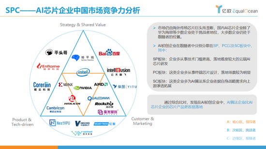 再看AI初创企业,多数AI芯片初创企业仍处于跟随者的位置,他们在产品和最终落地应用层面都还未成熟。通过综合对比AI芯片初创企业的竞争力,亿欧认为在AI芯片初创企业中,AI算法系企业比AI芯片系企业的芯片产品更容易落地。这也得益于目前多数AI算法系厂商已经通过系统集成的方式成功将算法产品落地,AI算法公司参与到芯片设计会让他们在产品优化上具有主导权,更重要的是基于原先的业务,AI算法系厂商研制的AI芯片在实际落地上拥有更大优势。