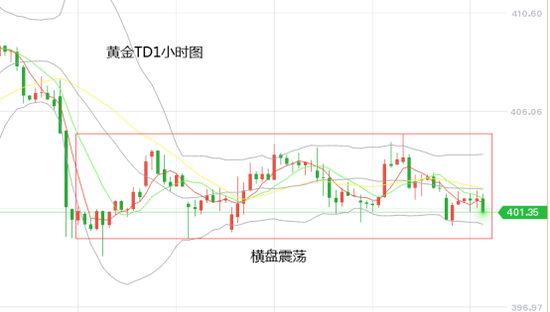 黄金TD:相对国际黄金来说,黄金TD走势更加无趣,上周初金价跳水之后,黄金TD价格便一直处于400元到405元之间,横盘震荡整理,没有明显方向。操作上,继续高沽低渣就可以,接近400元位置逢低买入,接近405元位置逢高做空,区间外的操作暂时不考虑,黄金TD价格一旦破位,市场一定出现较大的风险事件,不确定性较大,因此只做目前有把握的操作,在400元到405元区间操作就行。