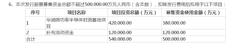 10月19日晚间,华润微披露三季度报告的同时,抛出一份定增预案。根据非公开发行预案,公司拟以询价方式非公开发行不超过1.35亿股,募集资金不超过50亿元。其中,38亿元投向华润微功率半导体封测基地项目,12亿元用于补充流动资金。目前公司尚无确定的发行对象。