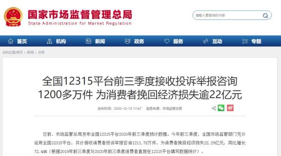 前三季度投诉举报六大特点网购、直播带货问题多➘