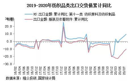 自8月份以来,印度疫情对印度经济边际影响逐步减弱,随着其陆续复工复产,后期转移到中国的纺织品订单或有限。从印度的制造业PMI来看,8月份恢复到50以上,9月恢复至56.8。这从google移动大数据也能加以印证,可以看到印度工作场所的移动信号有所增加,虽然还未恢复到疫情之前,但整体向好。从对美国的出口数据上,也可以证明这一点。因此整体上看,印度制造业处于加速恢复的过程中,后期转移到中国的纺织类订单持续性有限。