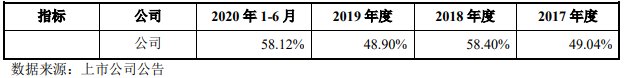 2017年至2020年上半年,美迪凯的主营业务毛利率分别为49.04%、58.40%、48.90%和58.12%,波动较大。