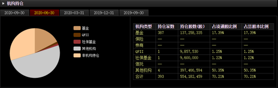 数据显示,截止中报,涪陵榨菜共有393家机构、基金持仓,占流通股比70.21%,其中基金有387家,占流通股比17.39%。